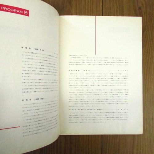 イギリスのピアニスト、ソロモン(Solomon)が1953年に行った日本公演のプログラム。コンサートで演奏された曲目の紹介と解説、ソロモンの略歴などを収録しています。