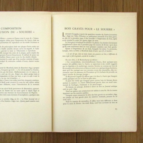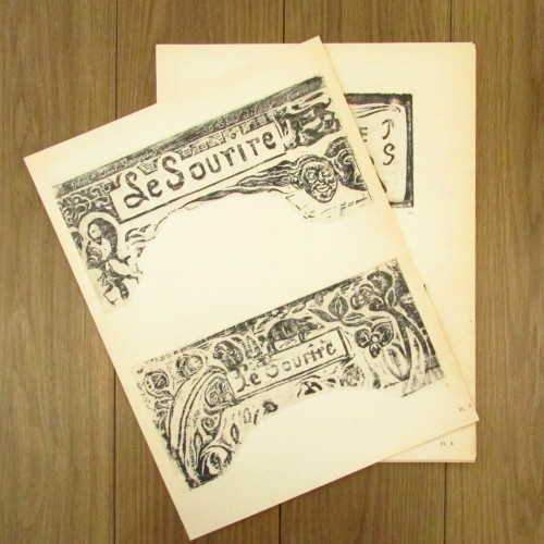 ゴーギャンがタヒチに滞在していた1899年から1900年にかけてに発行した月刊誌『Le Sourire』全9号の複製セット。ゴーギャンによる手書きのテキストや木版画が印刷された誌面の複製のほか、誌名を装飾して描いた木版画を収録した紙を5枚と解説の冊子(無綴じ)がセットとなっています。限定1000部。【言語:フランス語】