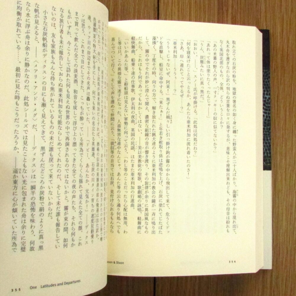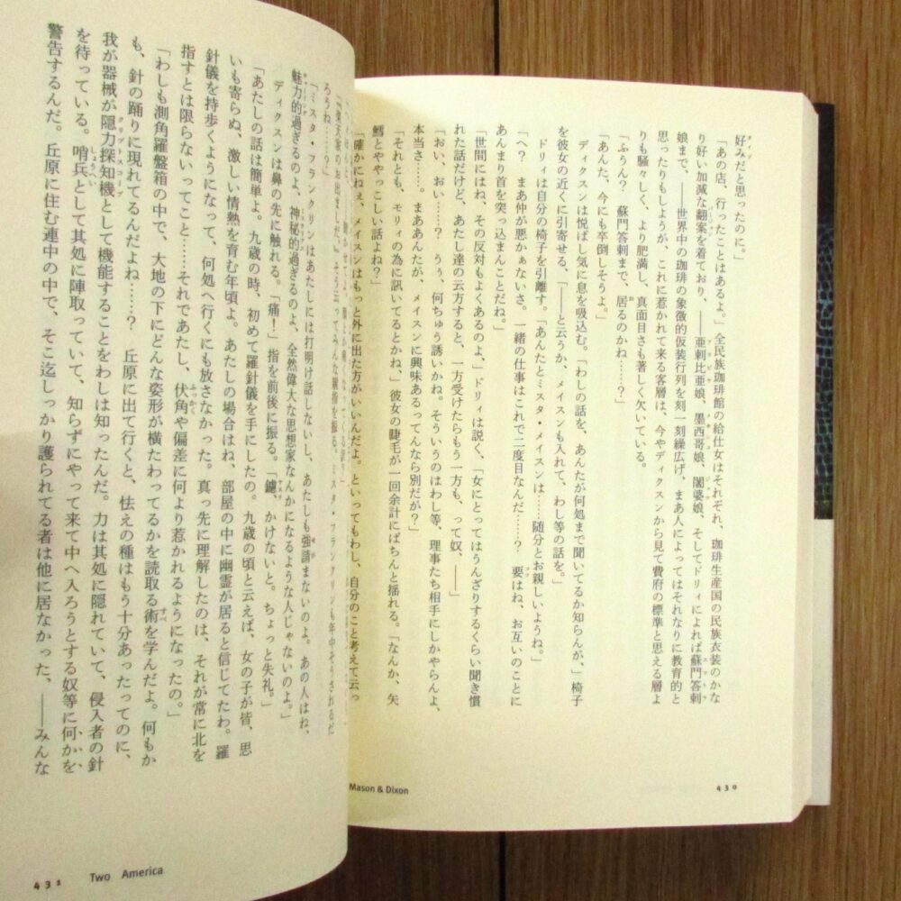 アメリカ現代作家の巨匠、トマス・ピンチョンによる長編小説第5作目。アメリカ独立戦争の直前、新大陸の領土問題を収める境界線を引くために測量の旅をしたふたりの天文学者の物語。突飛な登場人物や奇怪のなエピソードを精緻な史実の集積のもとに積み重ねた重厚な小説です。柴田元幸による初の訳出。